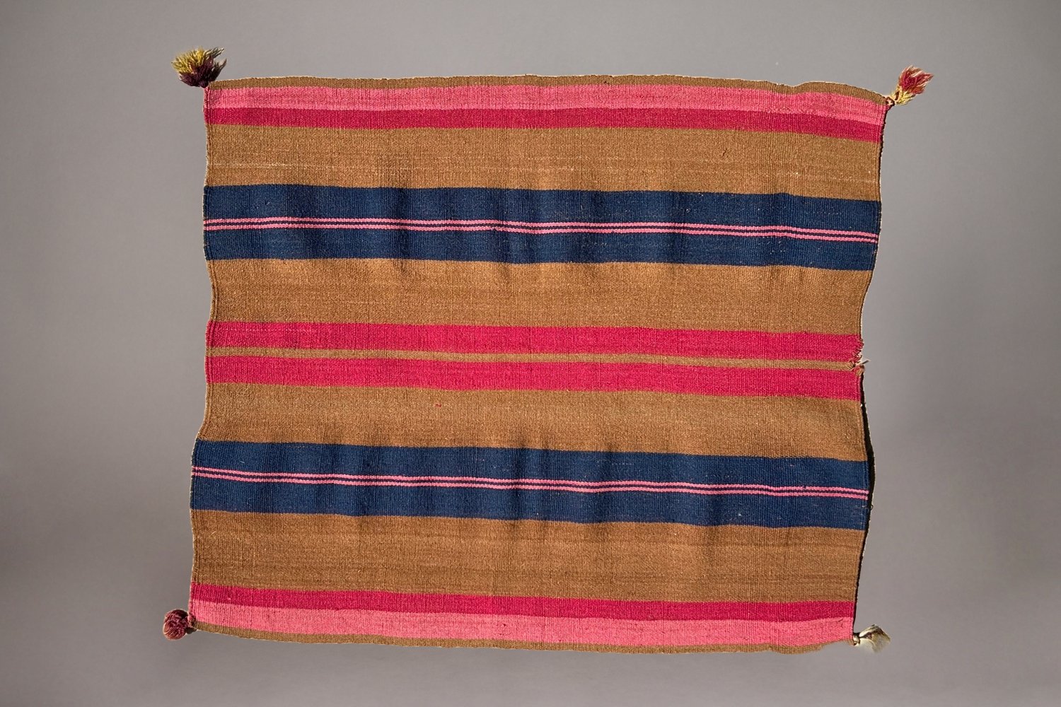 This tari, purchased in La Paz in 1986, features striking graphics that recall the aesthetics of a First Phase Navajo chief’s blanket. Some slight damage on one edge (see third photo).