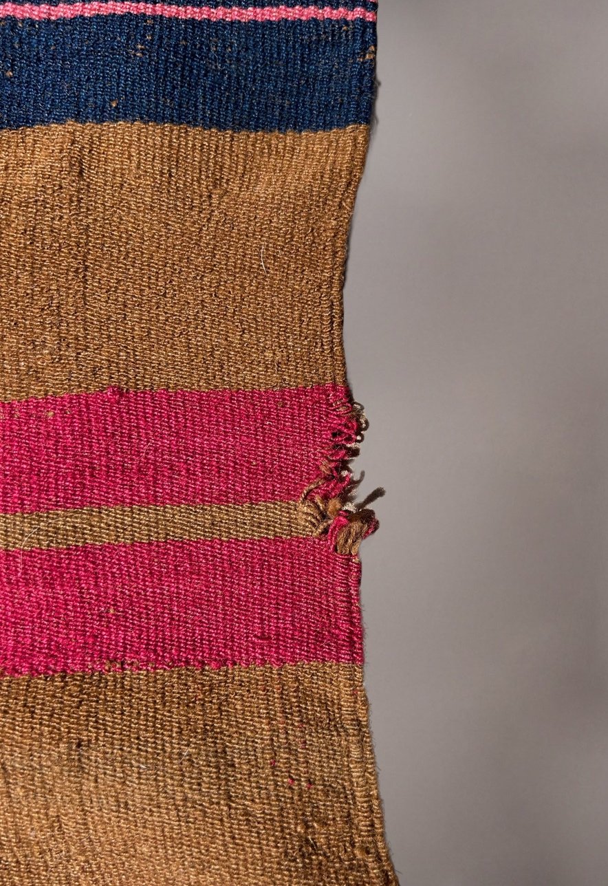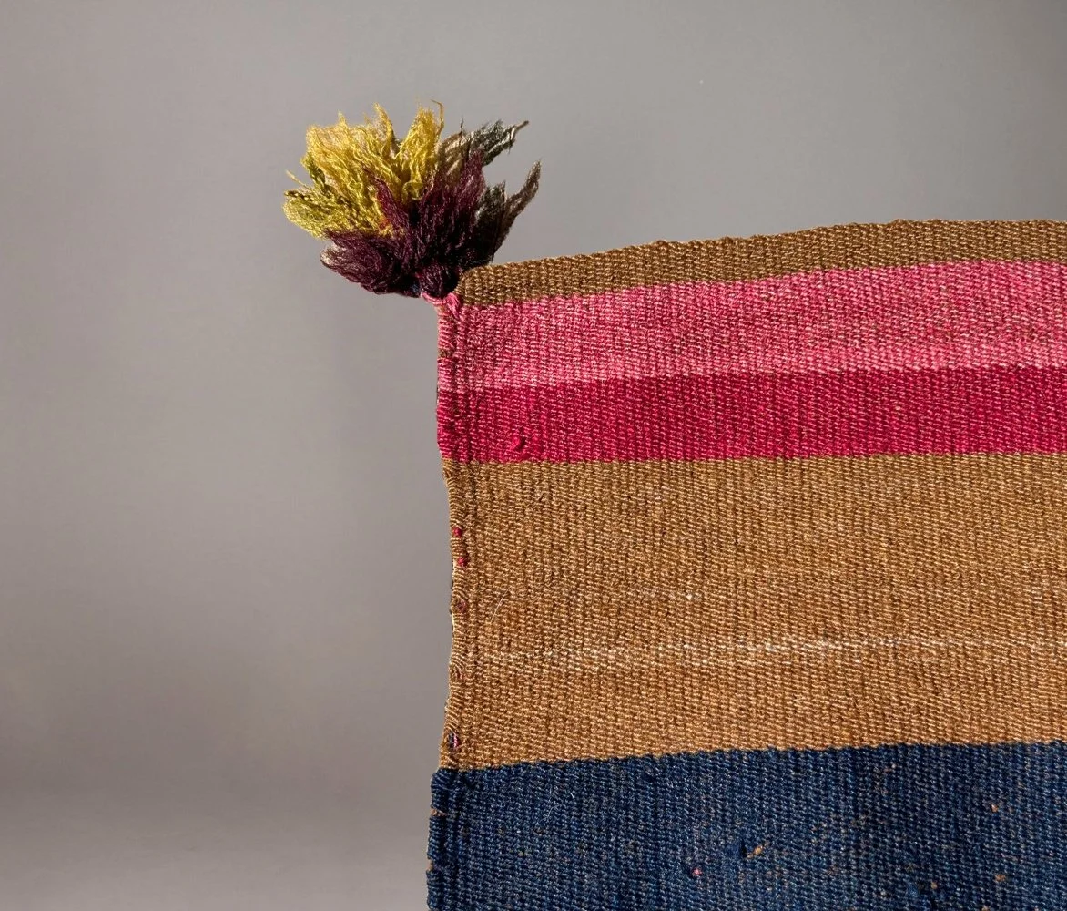 Alpaca wool with natural dyes (cochineal, indigo, natural brown pigment)