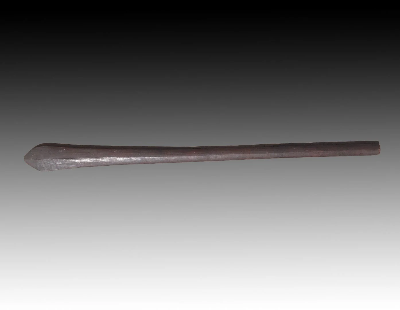 While starkly simple, the carving on this towering club shows fine craftsmanship, and as an object it brings a pleasing element of design to a room. This club may have been used in both conflict and dances preceding battle (vide Waite 1983: 88).