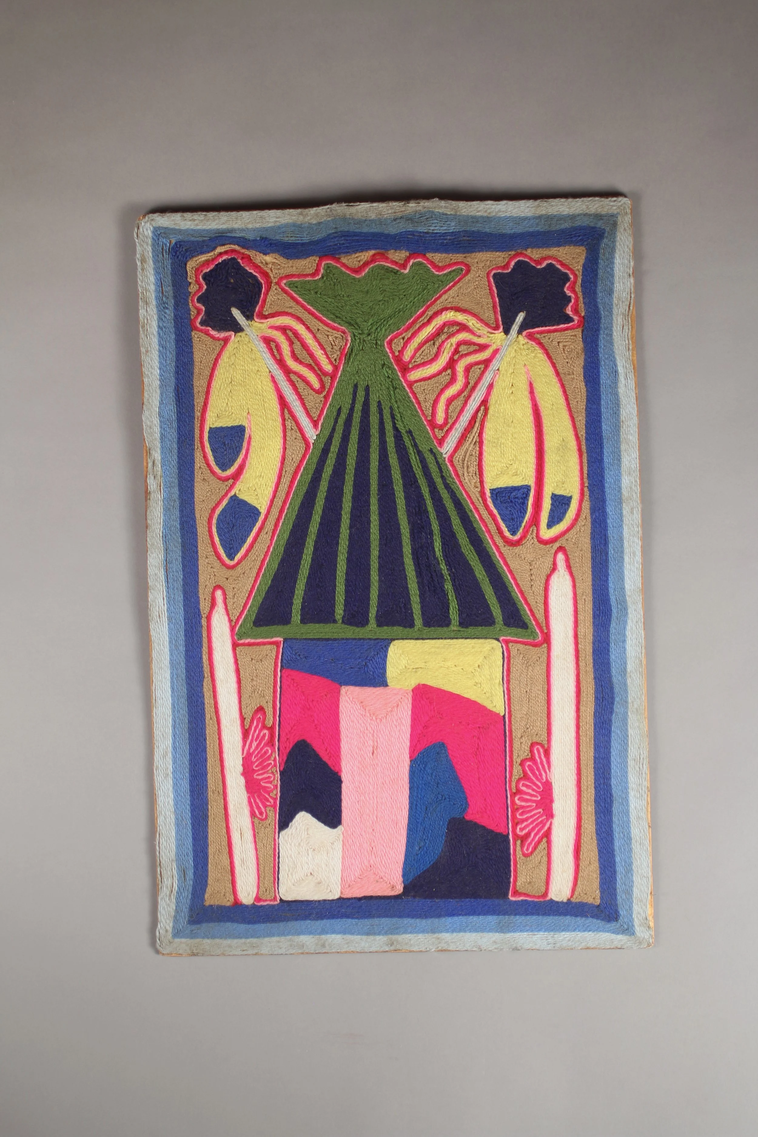 According to Peter Furst, an anthropologist who worked closely with the Huichol, this yarn painting may represent an early example of yarn paintings by the visionary Huichol shaman Ramón Medina Silva.