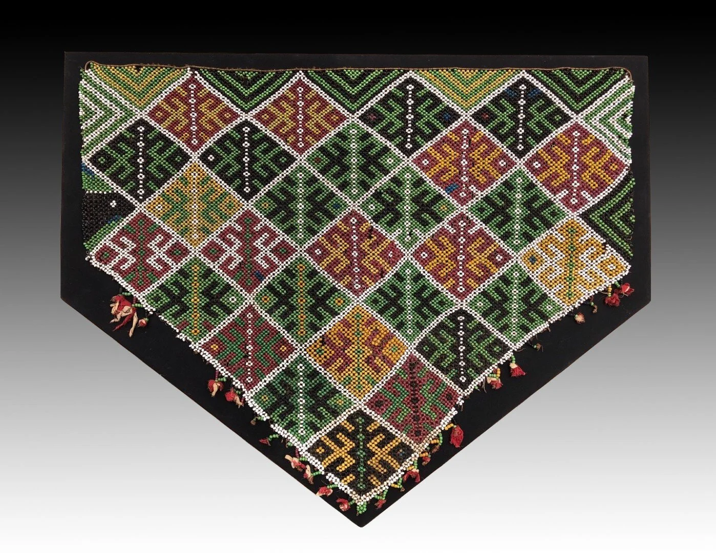 Beads, fiber, and trade cloth (mounted on stretcher frame)